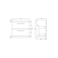 Synergy Gero 600mm 2 Drawer Wall Hung With Handles - Pebble Grey