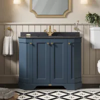 Bayswater 1000mm 4-Door Angled Cabinet with 3 Tap Hole Black Marble Top Basin
