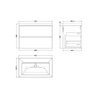 Kivo 800mm 2- Drawer Wall Hung Unit with a 1 Tap Hole Minimalist Basin Top