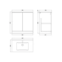 Kivo 800mm 2-Door Floor Standing Unit with a 1 Tap Hole Minimalist Basin Top