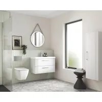 Nuie 800mm Satin White Wall Hung 2-Drawer Vanity Unit with Basin & Chrome Handles