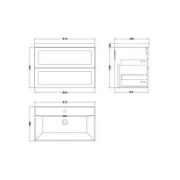 Larck 800mm 2- Drawer Wall Hung Unit with 1 Tap Hole Minimalist Basin Top