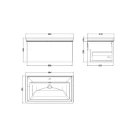 Kivo 600mm Single Drawer Wall Hung Unit with a Traditional Fireclay Basin - 0 Tap Holes