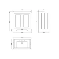 Flume 600mm 2-Door Floor Standing Unit with Traditional Fireclay Basin - 3 Tap Holes