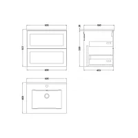 Larck 600mm 2- Drawer Wall Hung Unit with 1 Tap Hole Minimalist Basin Top