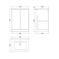 Kivo 600mm 2-Door Floor Standing Unit with a 1 Tap Hole Minimalist Basin Top