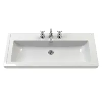 Flume 800mm Single Drawer Wall Hung Unit with Contemporary Fireclay Basin - 3 Tap Holes