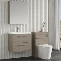 Nuie Deco 500mm Satin Grey Wall Hung 2-Drawer Vanity Unit with Curved Basin