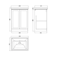 Larck 600mm 2-Door Floor Standing Unit with Traditional Fireclay Basin - 0 Tap Holes
