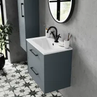 Hudson Reed Juno 600mm Metallic Slate Wall Hung 2 Door Vanity Basin Unit With Thin-Edge Ceramic Basin