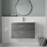 Nuie Athena 800mm Anthracite Woodgrain Wall Hung 2 Drawer Vanity Unit with Curved 1 Tap Hole Basin