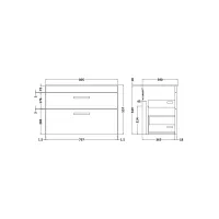 Nuie 600mm Wall Hung 2-Drawer Vanity Unit With Laminate Worktop