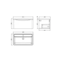 Nuie Lunar 800mm Wall Hung 1 Drawer Unit With Ceramic Basin