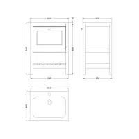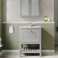 Bexley Floor Standing 1 Drawer Vanity & 1 Tap Hole Stone Basin, 600mm - Cool Grey