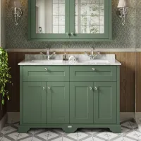 Hudson Reed Old London 1220mm Hunter Green Floor Standing Double Basin Vanity Unit With White Marble Top