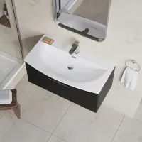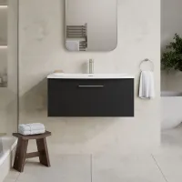 Nuie Arno 800mm Soft Black Wall Hung 1 Drawer Vanity Unit With Basin