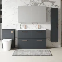 Nuie Athena 1200mm Anthracite Woodgrain Wall Hung 2 Drawer Vanity Unit With Twin Basin