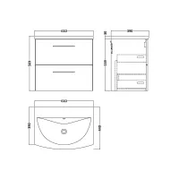 Nuie Arno 600mm Charcoal Black Wall Hung 2-Drawer Vanity Unit with Curved Basin
