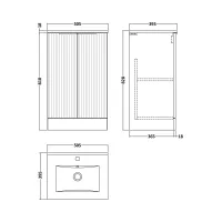 Hudson Reed Fluted 500mm Satin White Floor Standing 2-Door Vanity Unit With Ceramic Basin