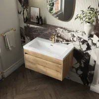 Loftwood 600mm Wall Hung 1 Drawer Unit and Marble Top Basin - Autumn Oak