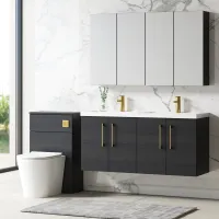 Nuie 1200mm Charcoal Black Wall Hung 4-Door Vanity Unit with Double Polymarble Basin