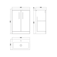 Nuie 600mm Floor Standing 2-Door Vanity Unit & Basin