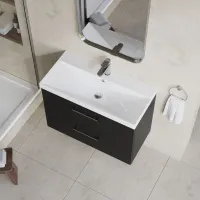 Nuie Arno 800mm Soft Black Wall Hung 2 Drawer Vanity Unit & Basin
