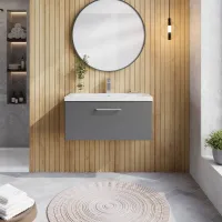 Nuie Arno 800mm Satin Grey Wall Hung 1 Drawer Vanity Unit With Basin