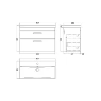 Nuie Athena 800mm Charcoal Black 2 Drawer Wall Hung Vanity Unit With Basin
