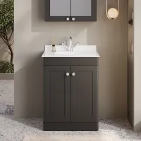 Nuie Classique 620mm Soft Black Floor Standing 2 Door Vanity Unit with 1 Tap Hole Basin & Backsplash