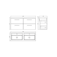 Nuie 1200mm Wall Hung 4-Drawer Vanity Unit with Double Basin
