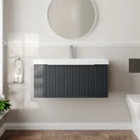 Hudson Reed Fluted 800mm Soft Black Wall Hung Single Drawer Vanity Unit With Ceramic Basin