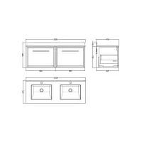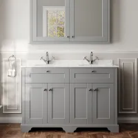 Hudson Reed Old London 1220mm Floor Standing 4 Door Double Basin Vanity Unit with Grey Marble Top