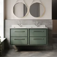 Hudson Reed Lille 1220mm Fern Green Wall Hung 4-Drawer Vanity Unit With Double Marble Basins