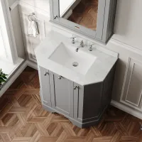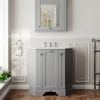 Hudson Reed Old London 750mm Storm Grey Floor Standing 3 Door Vanity Unit with 3 Tap Hole White Marble Top Basin