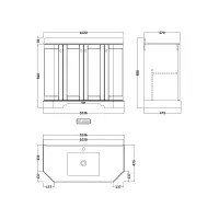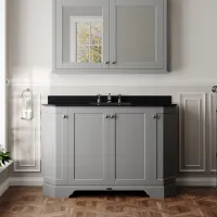 Hudson Reed Old London 1200mm Storm Grey Floor Standing 4 Door Vanity Unit With 3 Tap Hole Black Marble Top Basin