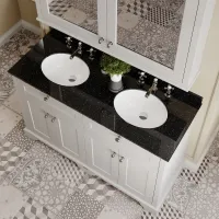 Hudson Reed Old London 1220mm Floor Standing 4 Door Vanity Unit with 3 Tap Hole Black Marble Double Basin