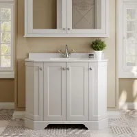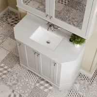 Floor Standing 4 Door Angled Vanity Unit with 1 Tap Hole White Marble Top 1000mm
