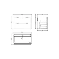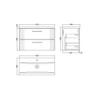 Nuie Havana 800mm Wall Hung 2 Drawer Vanity Unit with Basin