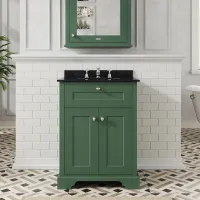 Hudson Reed Old London 600mm Hunter Green Floor Standing 2 Door Vanity Unit with Black Marble Top Basin