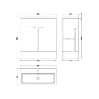 Lille 600mm Floor Standing 2-Drawer Vanity with Basin - 3 Tap Hole