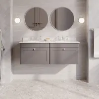 Nuie Classique 1200mm Satin Grey Wall Hung 2 Drawer Vanity Unit With 3 Tap Hole Marble Top & Basin