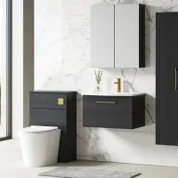 Nuie Lunar 800mm Soft Black Wall Hung 1 Drawer Unit & Polymarble Basin