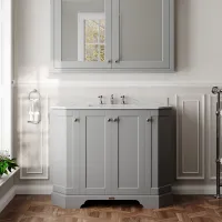 Hudson Reed Old London 1000mm Storm Grey 4 Door Floor Standing Vanity Unit with 3 Tap Hole Marble Top Basin