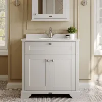 Hudson Reed Old London 800mm Floor Standing 2 Door White Marble Top Vanity Unit With 1 Tap Hole Soft Close Doors