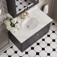 Nuie Classique 810mm Satin Green Wall Hung Single Drawer Vanity Unit With Marble Top