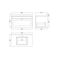 Nuie Classique 830mm Wall Hung 1 Drawer Vanity Unit with 3 Tap Hole Basin