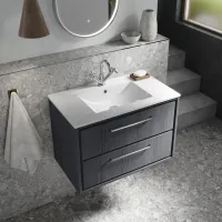 Hudson Reed Lille 810mm Graphite Grey Woodgrain Wall Hung 2-Drawer Vanity Unit With Marble Worktop