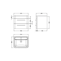 Hudson Reed Solar 600mm Wall Hung 2 Drawer Vanity Unit With Ceramic Basin