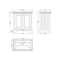 Flume 600mm 2-Door Floor Standing Unit with Contemporary Fireclay Basin - 0 Tap Holes